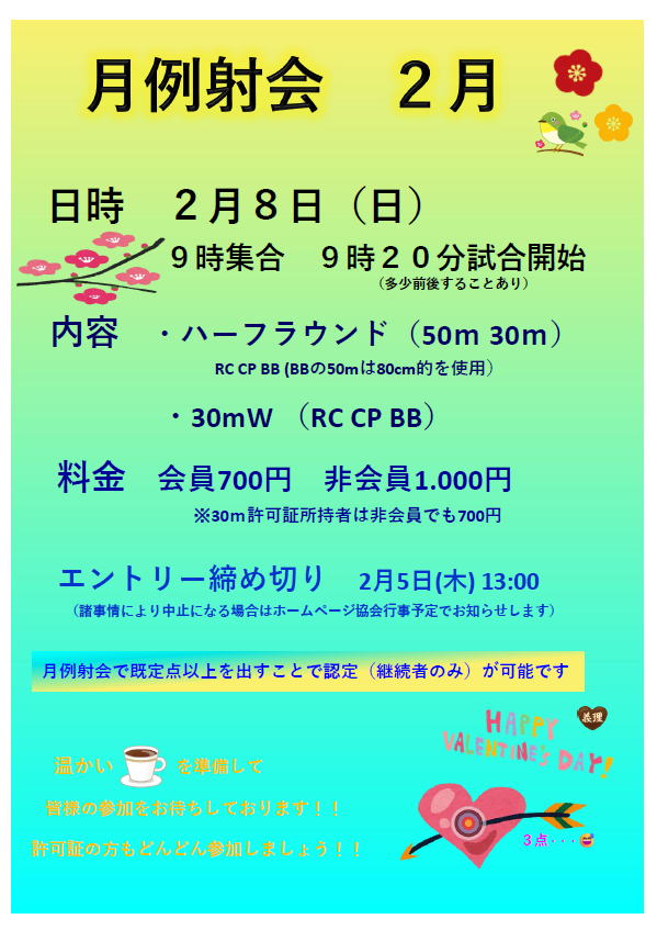 板橋区アーチェリー協会 2026年2月 月例射会のご案内