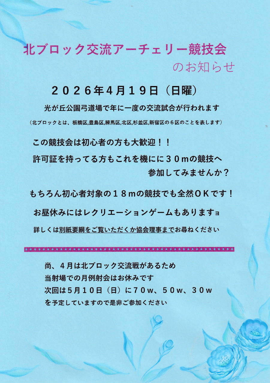 北ブロック交流アーチェリー競技会のお知らせ